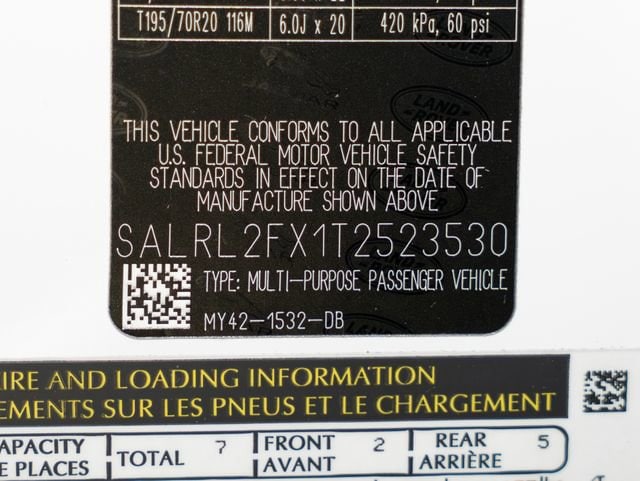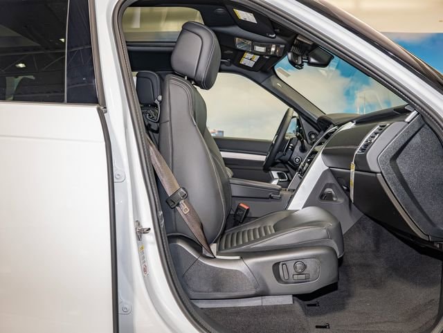 12 Speakers, 18-Way Heated Electric Front Seats, 3rd row seats: split-bench, 4-Wheel Disc Brakes, 4-Zone Climate Control, ABS brakes, Adaptive suspension, Air Conditioning, AM/FM radio: SiriusXM, Apple CarPlay & Android Auto, Auto High-beam Headlights, Auto tilt-away steering wheel, Auto-dimming door mirrors, Auto-dimming Rear-View mirror, Auto-leveling suspension, Automatic temperature control, Brake assist, Cabin Air Purification Plus, Comfort Pack, Compass, Configurable Cabin Lighting, Delay-off headlights, Discovery Handover Pack (preferred Pia), Dual front impact airbags, Dual front side impact airbags, DuoLeather Seat Trim, Electronic Stability Control, Emergency communication system, Emergency Pack (preferred Pia), Exterior Parking Camera Rear, Four wheel independent suspension, Front anti-roll bar, Front Center Console Refrigerator Compartment, Front dual zone A/C, Front fog lights, Fully automatic headlights, Garage door transmitter: HomeLink, Head-Up Display, Heated door mirrors, Heated front seats, Heated steering wheel, Illuminated entry, Leather Shift Knob, Low tire pressure warning, Memory seat, Navigation system: Connected Navigation PIVI Pro, Occupant sensing airbag, Outside temperature display, Overhead airbag, Overhead console, Panic alarm, Power adjustable front head restraints, Power door mirrors, Power driver seat, Power Liftgate, Power moonroof, Power passenger seat, Power steering, Power windows, Powered Inner Tailgate, Premium Interior Protection Pack (preferred Pia), Radio data system, Radio: Meridian Sound System, Radio: Meridian Surround Sound System, Rain sensing wipers, Rear air conditioning, Rear anti-roll bar, Rear fog lights, Rear window defroster, Remote keyless entry, Security system, Solar Attenuating Windshield, Speed control, Speed-sensing steering, Speed-Sensitive Wipers, Split folding rear seat, Spoiler, Steering wheel memory, Steering wheel mounted audio controls, Technology Pack, Telescoping steering wheel, Tow Hitch Receiver, Traction control, Turn signal indicator mirrors, Weather band radio, Wheel Protection Pack (preferred Pia), Wheels: 21" Gloss Black, Wi-Fi Enabled with Data Plan.